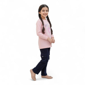 • Durable Cargo Pants: The top is paired with functional and stylish cargo pants in a solid, contrasting color. These pants feature multiple side pockets, a comfortable waistband, and a straight-leg fit, making them perfect for school, play, and exploration.