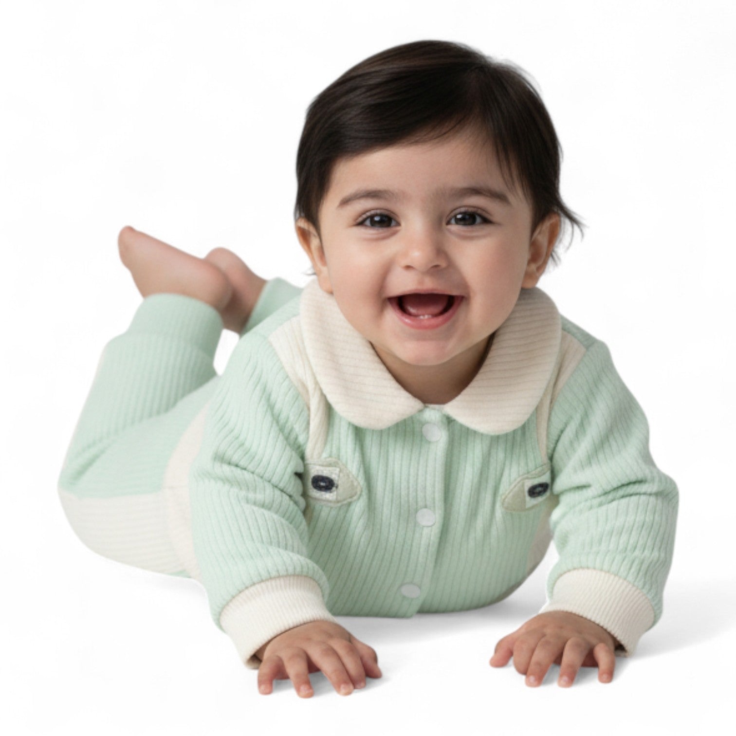 This premium set is crafted from Jacquard Imported Velour. This is not ordinary velour; the jacquard weave gives it a beautiful, ribbed (corded) texture that is incredibly soft, warm, and luxurious to the touch. It's the perfect gentle fabric for your baby's delicate skin.